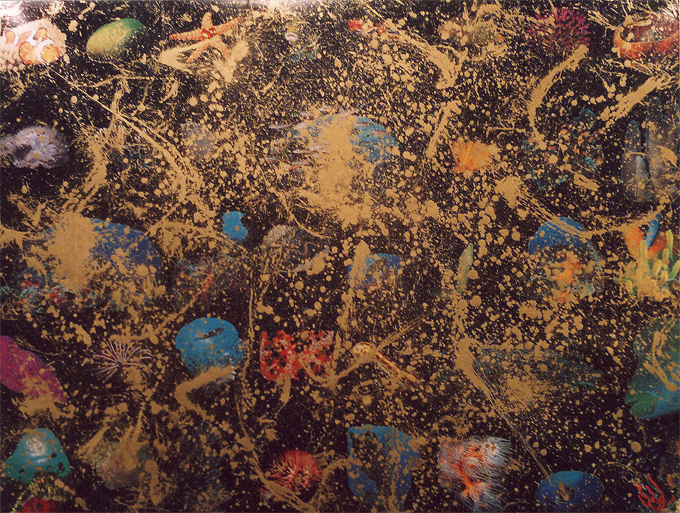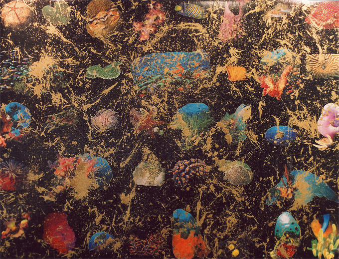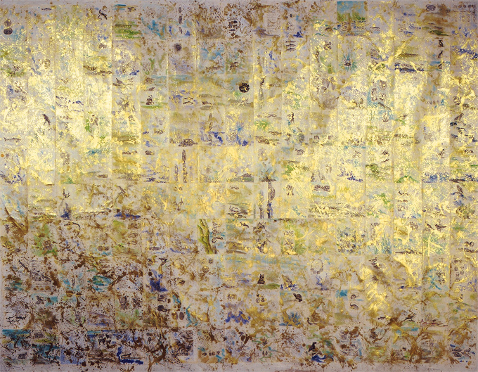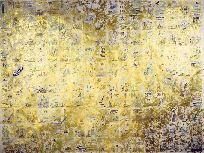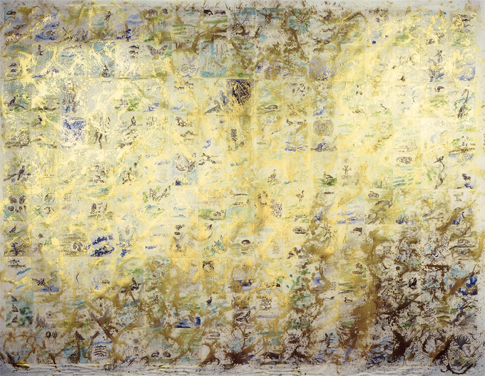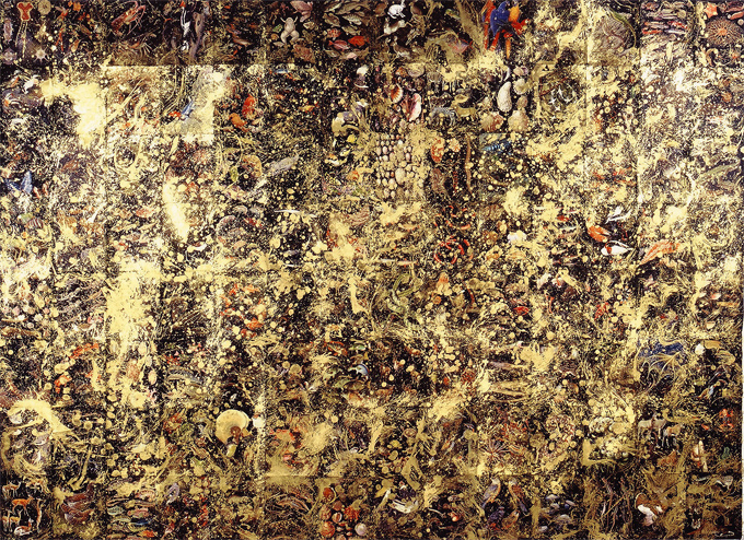 Coral II 2002 pages, collage, acrylic, ink, gold pigment on canvas 180 cm x 141 cm
