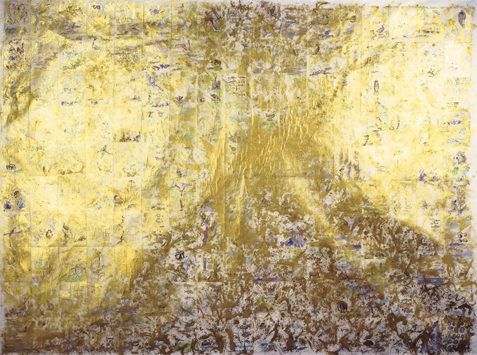 Evolution III 1997 pages, collage, acrylic, gold pigment on canvas 340 cm x 260 cm