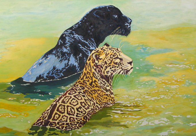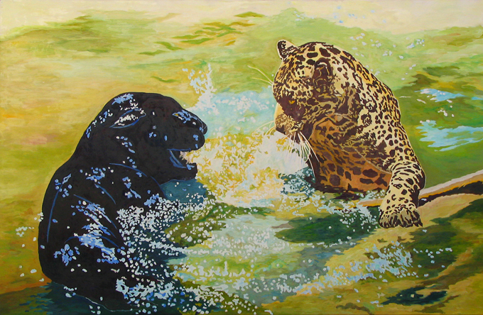 Panther bathing I 2009 egg tempera and oil on wooden plate 120 cm x 80 cm